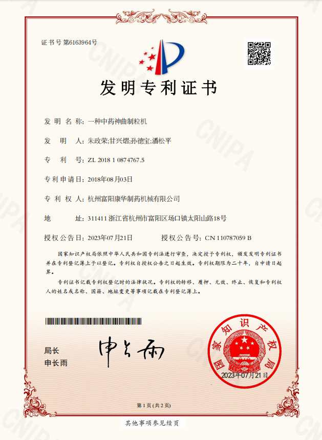 杭州富陽康華制藥機(jī)械有限公司(初創(chuàng)于2001年, 2004年后更名為:杭州富陽康華機(jī)械設(shè)備廠),是集產(chǎn)科研一體化的中藥材前處理及飲片加工設(shè)備制造企業(yè)。公司秉承以產(chǎn)品質(zhì)量為基礎(chǔ)、客戶服務(wù)為向?qū)?、科研?chuàng)新為后勁的宗旨,在企業(yè)高速發(fā)展的同時(shí),著力打造新產(chǎn)品研發(fā)中心,以開發(fā)現(xiàn)代、新穎設(shè)備為重任,確保產(chǎn)品立于行業(yè)先進(jìn)行列,企業(yè)已擁有70余項(xiàng)專利...
