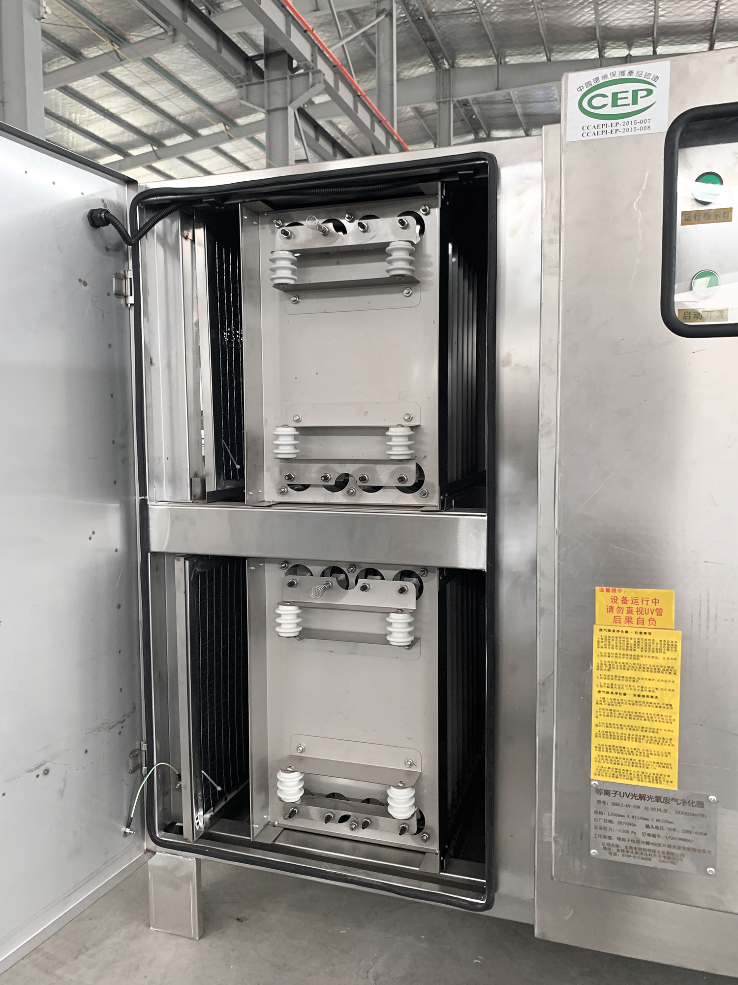 工作原理:在光解區,利用特制的高能高臭氧UV紫外線光束照射異味氣體,經多級凈化后徹底達到脫臭及殺滅細菌的目的;在分解區,低溫等離子體降解污染物是利用這些高能電子、自由基等活性粒子和廢氣中的污染物作用,使污染物分子在極短的時間內發生分解,并發生后續的各種反應以達到降解污染物的目的。最終達到排放標準。