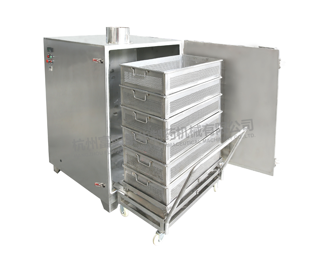 主要特點:箱體上部安裝減壓閥、溫度表,便于觀察和操作控制;方形箱體的有效容積利用率為99%。蒸汽經減壓后直接加熱,箱內升溫快,受熱均勻,節約能源;采用料盤裝料。符合GMP認證要求。